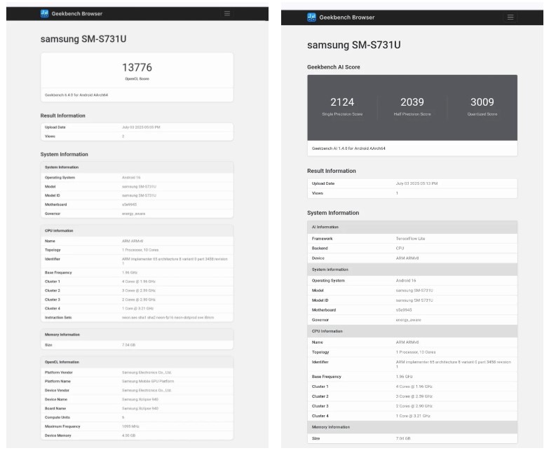 ข้อมูลมาจาก @yabhishekhd บน X เค้าโชว์ผล Benchmark ของ S25 FE ที่รันด้วยชิป Samsung Exynos 2400 คู่กับ Xclipse 940 GPU คะแนน OpenCL ของ Geekbench พุ่งไปถึง 13,776 เลยนะ! นั่นหมายถึงพลังกราฟิกที่เหลือเฟือสำหรับการเล่นแอนิเมชันตอนมัลติทาสก์สบายๆ