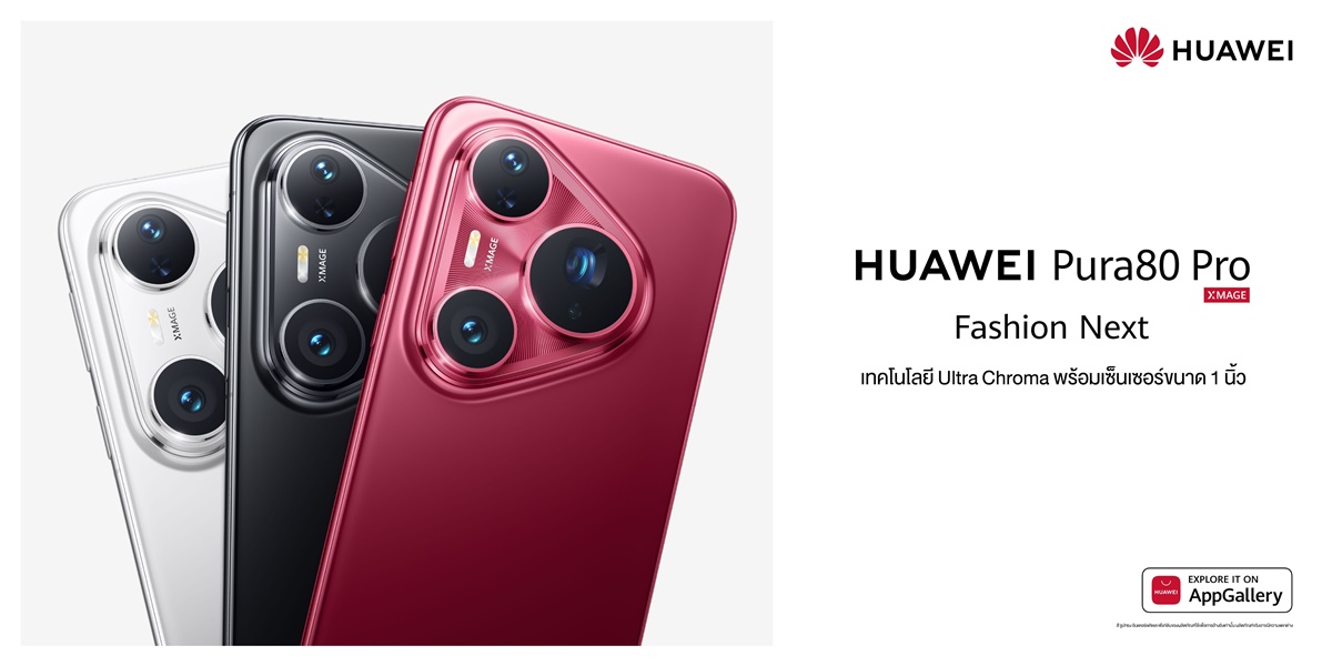กรุงเทพฯ 31 กรกฎาคม 2568 – หัวเว่ย คอนซูมเมอร์ บิสสิเนส กรุ๊ป (ประเทศไทย) ตอกย้ำความเป็นผู้นำสมาร์ทโฟนรุ่นเรือธง ด้วยการมาถึงของ HUAWEI Pura 80 Series ที่ผสานนวัตกรรมกล้องอันเหนือชั้นเข้ากับฟีเจอร์ก้าวล้ำ โดยรุ่นที่น่าจับตามองอย่าง HUAWEI Pura 80 Pro โดดเด่นเหนือสมาร์ทโฟนในระดับเดียวกัน เพราะเป็นตัวแรกของวงการที่มาพร้อมกล้องเซ็นเซอร์ขนาดใหญ่ถึง 1 นิ้ว ซูมได้คมชัดสูงสุด 100 เท่า พร้อมระบบประมวลผลภาพอัจฉริยะ XMAGE ให้ภาพถ่ายสวยมีมิติในทุกสถานการณ์ และกล้อง Telephoto Macro ระดับชั้นนำ ให้ระยะโฟกัสใกล้สูงสุด 5 เซนติเมตร พร้อม AI อัจฉริยะที่สามารถเรียนรู้และเป็นผู้ช่วยในการใช้งานได้อย่างมีประสิทธิภาพ ดีไซน์โดดเด่นเป็นเอกลักษณ์ รวมทั้งรองรับการเข้าถึงแอปยอดนิยมผ่าน AppGallery วางจำหน่ายแล้วในราคาเริ่มต้นที่38,990 บาท พร้อมโปรโมชั่นและสิทธิพิเศษมากมาย