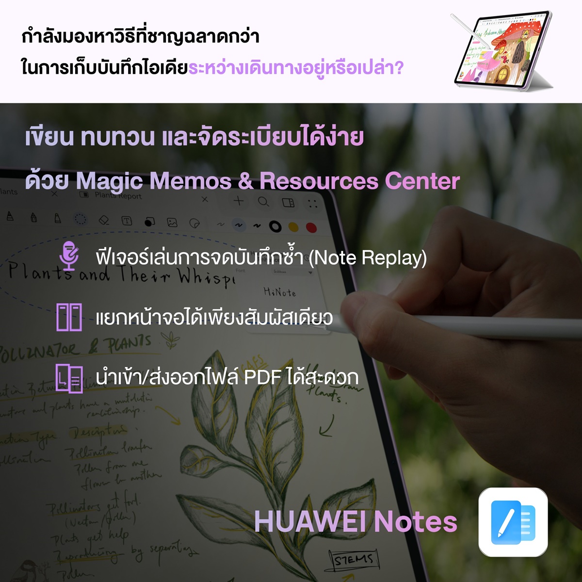 HUAWEI MatePad 11.5” 2025 ออกแบบมาเพื่อตอบโจทย์การทำงานและการเรียนได้ในทุกที่ทุกเวลา เพราะพกพาได้สะดวกแบบแท็บเล็ต และทำงานได้เหมือนคอมพิวเตอร์โน้ตบุ๊คเมื่อใช้คู่กับอุปกรณ์เสริมอย่างคีย์บอร์ด HUAWEI Smart Keyboard นอกจากนี้ยังมีแอปพลิเคชัน PC-Level WPS Office 2.0 ให้คุณจัดการงานเอกสารได้เทียบเท่าคอมพิวเตอร์ ไม่ว่าจะเป็นตารางข้อมูลที่ซับซ้อน การสร้างพรีเซนเทชันที่น่าสนใจ หรือแก้ไขเอกสารต่างๆ ก็ทำได้อย่างราบรื่นและคล่องตัว อีกทั้งยังมีแอปจดบันทึก HUAWEI Notes ที่มาพร้อม Resource Center ซึ่งมีรูปแบบเอกสาร กระดาษ และสติกเกอร์ให้เลือกใช้มากมาย ที่สำคัญยังเป็นรุ่นแรกของ HUAWEI MatePad 11.5” 2025 ที่มาพร้อมแอปวาดภาพ GoPaint ซึ่งมีแปรงและผืนผ้าใบดิจิทัลหลากหลาย ให้คุณสร้างสรรค์ผลงานได้อย่างเต็มที่