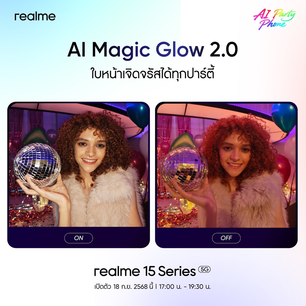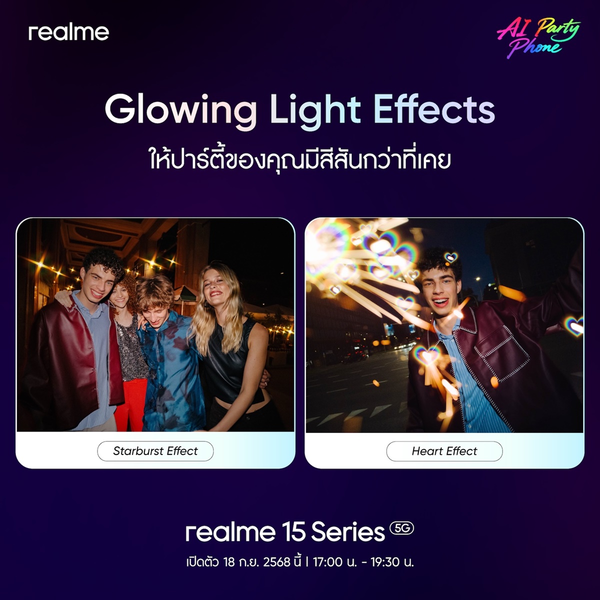 สายปาร์ตี้ต้องว้าว! realme 15 Series 5G ชูกล้อง Triple 50MP และ AI Party Mode เก็บทุกช็อตความสนุก พร้อมจัดปาร์ตี้เปิดตัว 18 กันยายนนี้