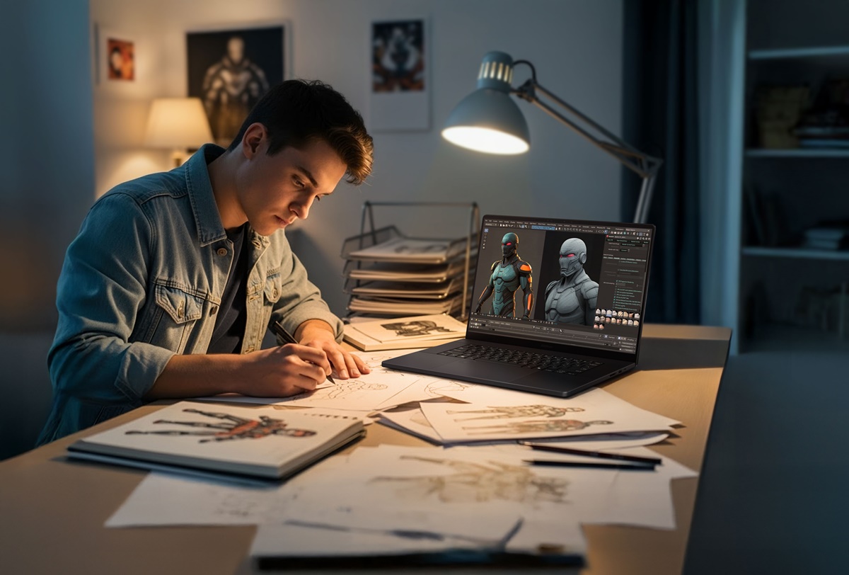 นภาพ โดยสร้างจากไอเดียหรือข้อความที่ ผู้ใช้ป้อน เมื่อใช้งานร่วมกับ ProArt P16 ที่ขับเคลื่อนด้วยการ์ดจอ GeForce RTX 5090 Laptop สามารถสร้างภาพจาก AI ได้เร็วขึ้นและมีคุณภาพสูงขึ้น ด้วยการประมวลผลที่ใช้พลั งจากเครื่องโดยตรง ไม่ต้องพึ่งคลาวด์