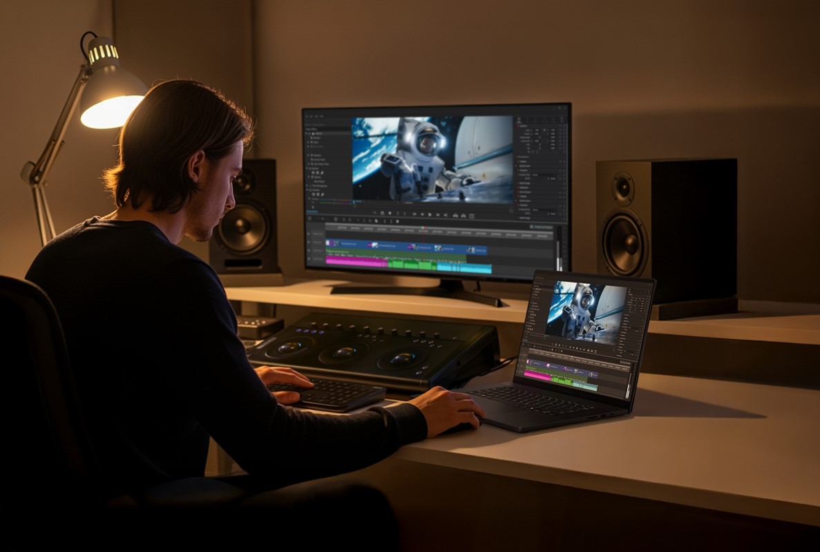 ProArt P16 ผสานทุกสิ่งที่ครีเอเตอร์ต้ องการไว้ในโซลูชันที่ทรงพลั งและออกแบบมาโดยเฉพาะสำหรั บสายสร้างสรรค์ ด้วยการ์ดจอล่าสุด NVIDIA GeForce RTX 5090 Laptop นับเป็นก้าวกระโดดของวงการตัดต่ อวีดีโอ มอบทั้งความเร็วและเสถียรภาพที่ ไร้เทียมทาน รองรับสีแบบ 10-bit 4:2:2 การเข้ารหัส/ถอดรหัสวิดี โอ 4K/8K ได้อย่างรวดเร็ว การประมวลผลเอฟเฟกต์ AI อันทรงพลังยังช่วยเร่งงานอย่ างเช่น การลดนอยส์, การอัปสเกลภาพ และการตรวจจับฉากอัตโนมัติ ทำให้ลดภาระงานของเหล่าครี เอเตอร์ได้อย่างมาก หน่วยความจำกราฟิก (VRAM) ขนาดใหญ่ยังช่วยให้จัดการกั บไฟล์ขนาดใหญ่และองค์ประกอบที่ ซับซ้อนได้อย่างราบรื่น ไม่มีสะดุดหรือเฟรมตก ในขณะที่โหมด AV1 Ultra High Quality ก็ช่วยให้การบีบอัดไฟล์มีประสิ ทธิภาพมากขึ้นโดยไม่ลดคุ ณภาพของภาพ