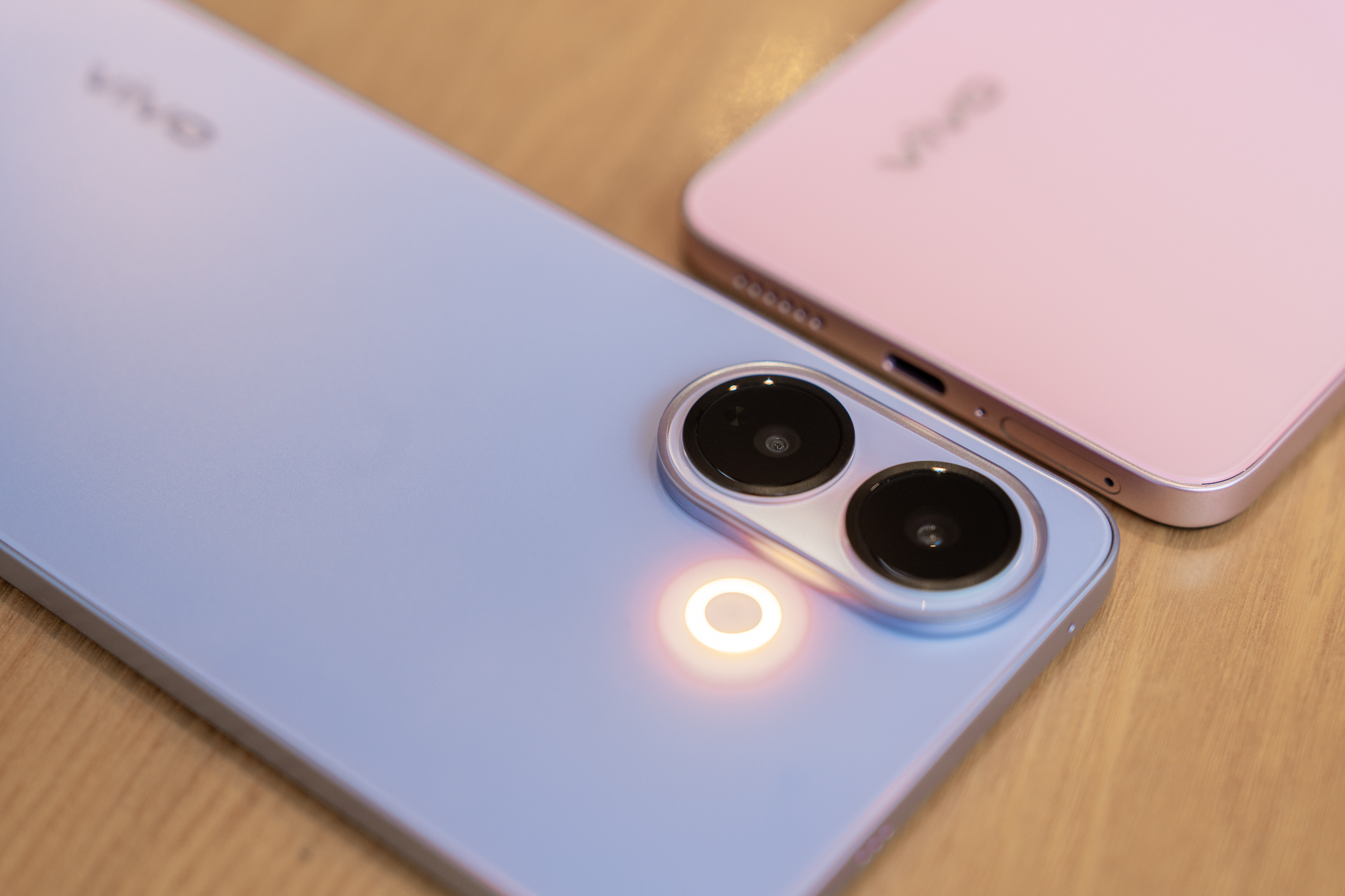 ฝาหลังมีการเล่นแสงสวยงาม หยิบจับมาใช้แล้ว ดูสวยสะอาดตา โดยรวมคือดูพรีเมียมสบายตาเน้นความเป็นมินิมอล การจับถือกระชับมือ ส่วนการจัดวางโมดูลกล้องเรียงเป็นแนวตั้ง มีไฟแฟลชแบบ Aura Light ที่เป็นเอกลักษณ์ของ vivo ที่สามารถปรับแสงสีของไฟแฟลชได้ในรูปแบบวงแหวนที่ช่วยให้การถ่ายภาพ Prortrait ออกมาสวยงาม