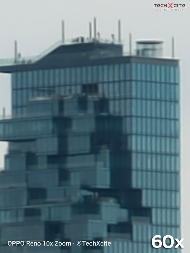 ตัวกล้อง Tele ของ Reno 10x Zoom นั้นจะสามารถซูมแบบ Optical ได้ที่ 5x ถือว่าไกลมาก ๆ แล้วในมือถือยุคนี้ แต่ด้วยการปรับแต่งซอฟต์แวร์ที่ยอดเยี่ยมของ OPPO จะทำให้รุ่นนี้สามารถซูมเข้าไปได้ไกลกว่าเดิมอีกที่ 10x แบบไม่เสียรายละเอียด ตรงนี้เรียกว่า Hybrid Zoom นั่นเอง โดยใช้เทคโนโลยีการรวมภาพของตัวกล้องหลักที่มีความละเอียดสูงถึง 48 ล้านพิกเซล มารวมเข้ากับกล้อง 13 ล้านพิกเซลได้อย่างลงตัว