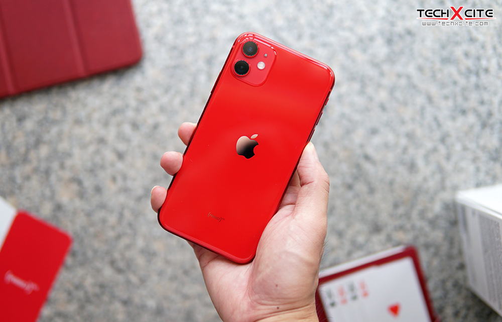 ตัวฝาหลังก็เป็นกระจกมันวาวตามสไตล์ iPhone สวยและดูดีทีเดียว มีการแบ่งกระจกเป็น 2 แบบที่ตัวฝาหลังจะเป็นแบบมันวาวและตรงกระจกกรอบเลนส์ก็จะเป็นแบบด้านแทน แต่ตรงนี้จะเป็นกระจกชิ้นเดียวกัน ช่วยเพิ่มมิติของฝาหลังได้มากกว่าแบบเรียบ ๆ ของรุ่นก่อนเยอะ สีสันของ iPhone 11 ก็มีมาให้เลือกเยอะ แน่นอนว่าเฮียเลือกสีแดงมาเพราะชอบสีนี้ที่สุด