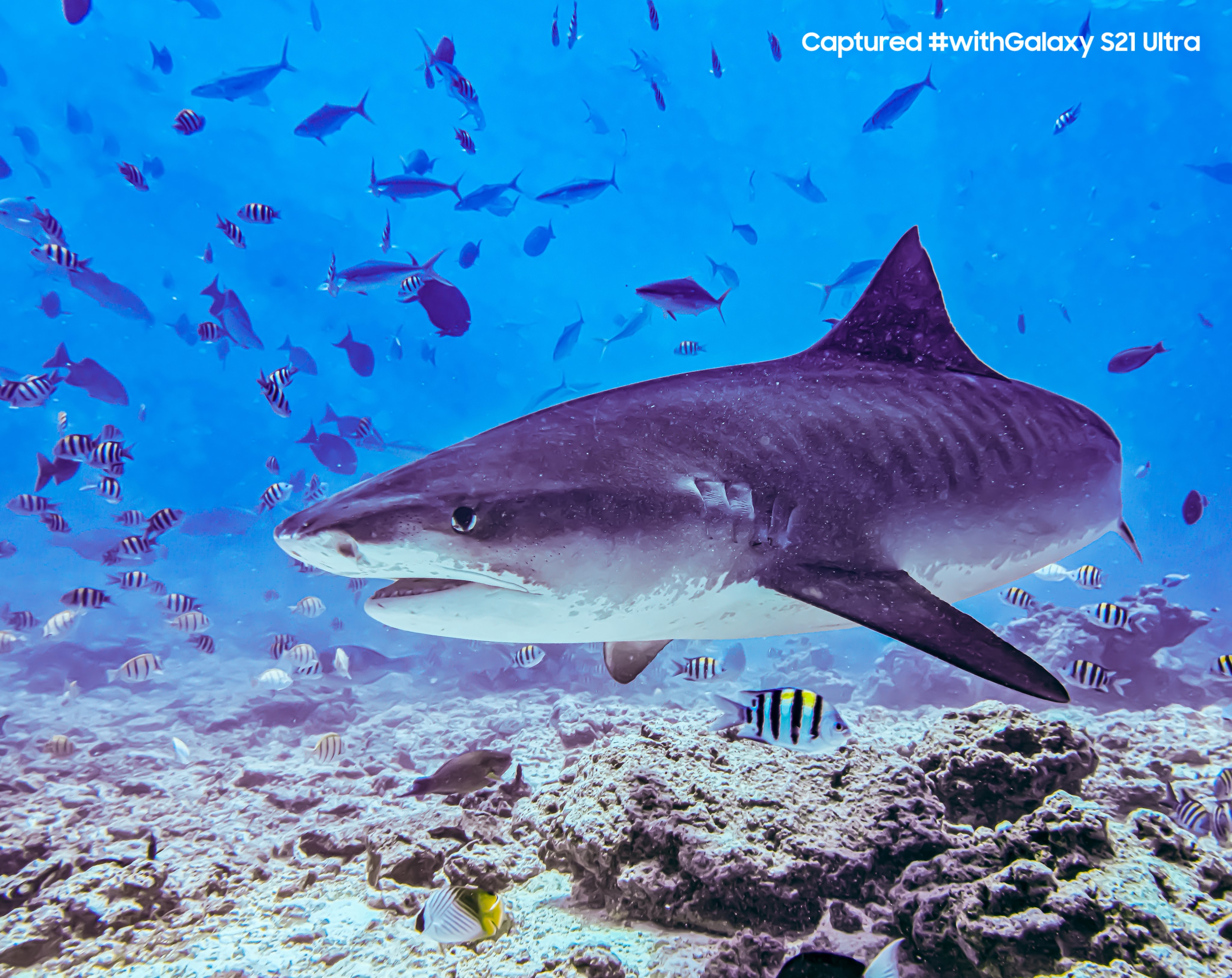 เธอกล่าวว่า “ขณะถ่ายทำใต้น้ำในมัลดีฟส์ ฉันถูกรายล้อมไปด้วยฉลามเสือ เต่าปากเหยี่ยว ฝูงปลา และปะการัง ฉันสามารถจับภาพของสัตว์สายพันธุ์เหล่านี้ได้อย่างง่ายดายด้วยวิดีโอความละเอียดสูง การสแนปวิดีโอ 8K ของ Galaxy S21 Ultra 5G ทำให้ฉันจดจ่อกับการถ่ายทำฉลามด้วยความมั่นใจว่าฉันจะไม่พลาดโอกาสสำหรับชุดภาพที่ยอดเยี่ยม ในฐานะนักสำรวจและผู้สร้างภาพยนตร์ของ National Geographic ฉันจะบอกว่าประสบการณ์ของฉันในการถ่ายทำ Galaxy S21 Ultra 5G นั้นพิเศษมากจริงๆ” Malaika Vaz กล่าว