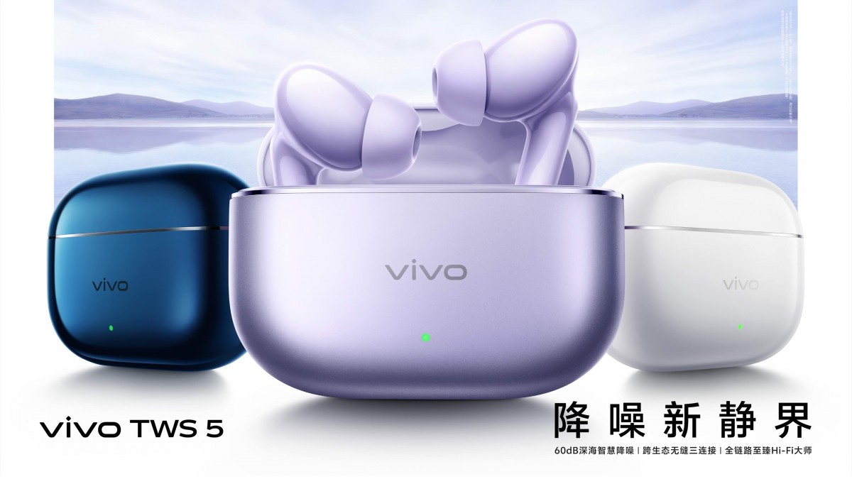 ปิดท้ายด้วย vivo TWS 5 หูฟังไร้สายระดับเรือธงรุ่นล่าสุด ที่มาพร้อมไดรเวอร์ขนาด 11 มม. และรองรับ Bluetooth 5.4 มีให้เลือก 2 รุ่นคือรุ่นมาตรฐานและรุ่น Hi-Fi ซึ่งรุ่น Hi-Fi จะรองรับการเล่นไฟล์เสียงคุณภาพสูงแบบ LHDC และมีเทคโนโลยีเสียง DeepX 4.0 stereo ความสามารถในการตัดเสียงรบกวนแบบแอคทีฟ (ANC) นั้นทำได้ดีเยี่ยมสูงสุดถึง 60dB ด้านแบตเตอรี่ก็อึดสุด ๆ ใช้งานรวมเคสได้สูงสุด 48 ชั่วโมง เมื่อปิด ANC นอกจากนี้ยังกันน้ำกันฝุ่นระดับ IP54 และมีฟีเจอร์เด่นอย่างการเชื่อมต่อกับอุปกรณ์ได้ 3 ตัวพร้อมกัน และฟังก์ชันแปลภาษาแบบเรียลไทม์ถึง 5 ภาษา โดยรุ่นมาตรฐานมีราคาเริ่มต้นที่ 399 หยวน (ประมาณ 1,800 บาท)