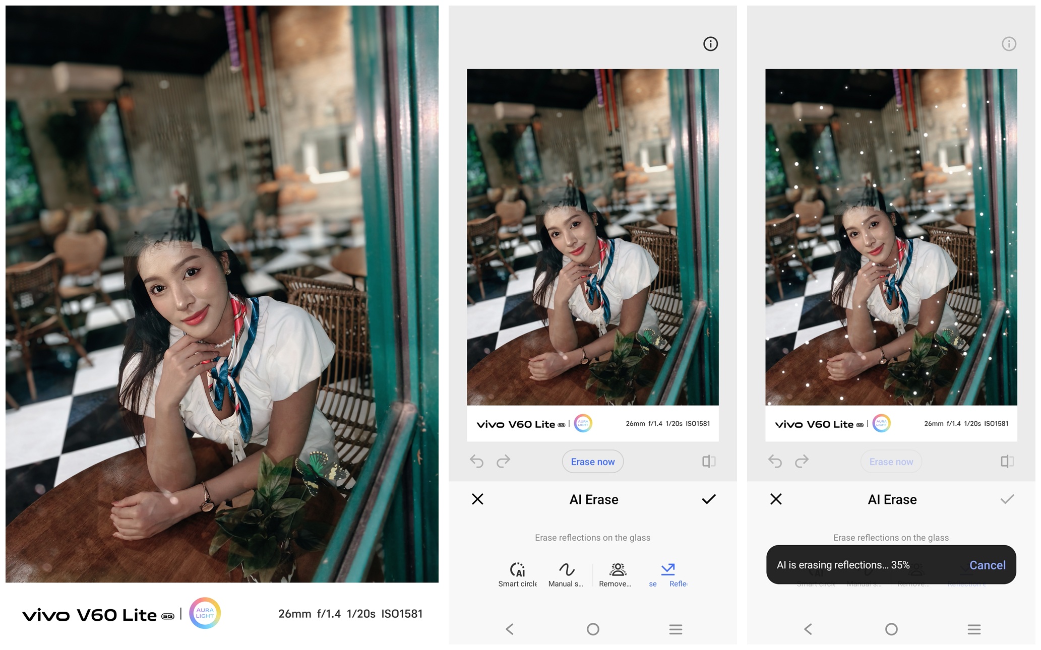หรือฟีเจอร์ AI Reflection Erase ที่ช่วยแก้ไขภาพด้วยการตัดแสงสะท้อนกรณีถ่ายภาพผ่านกระจกได้