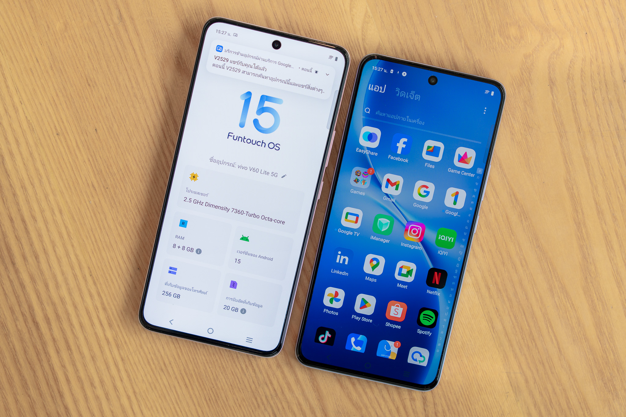 - ระบบปฏิบัติการ Funtouch OS 15 ที่ทำงานบน Android 15