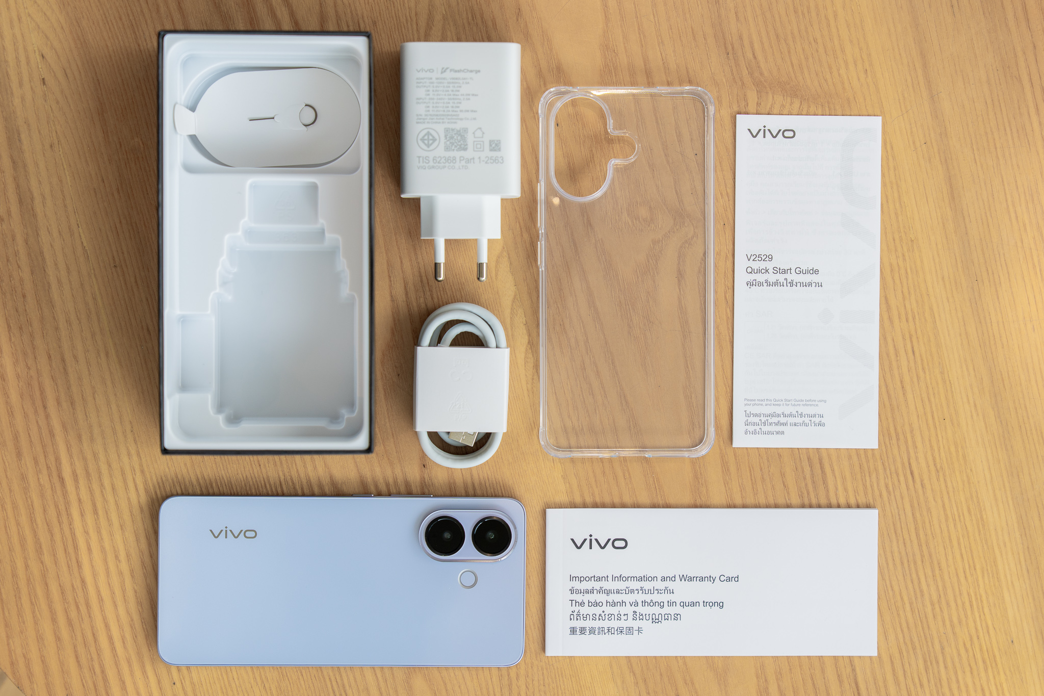 ภายในกล่องมาพร้อมกับ อะแดปเตอร์ สายชาร์จ และเคสพลาสติกแบบใสมาให้เลย โดยตัวเครื่องก็ติดฟิล์มหน้าจอมาให้