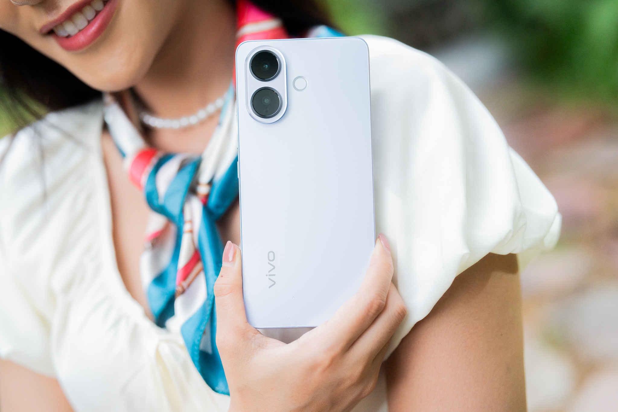ฝาหลังมีการเล่นแสงสวยงาม หยิบจับมาใช้แล้ว ดูสวยสะอาดตา โดยรวมคือดูพรีเมียมสบายตาเน้นความเป็นมินิมอล การจับถือกระชับมือ ส่วนการจัดวางโมดูลกล้องเรียงเป็นแนวตั้ง มีไฟแฟลชแบบ Aura Light ที่เป็นเอกลักษณ์ของ vivo ที่สามารถปรับแสงสีของไฟแฟลชได้ในรูปแบบวงแหวนที่ช่วยให้การถ่ายภาพ Prortrait ออกมาสวยงาม