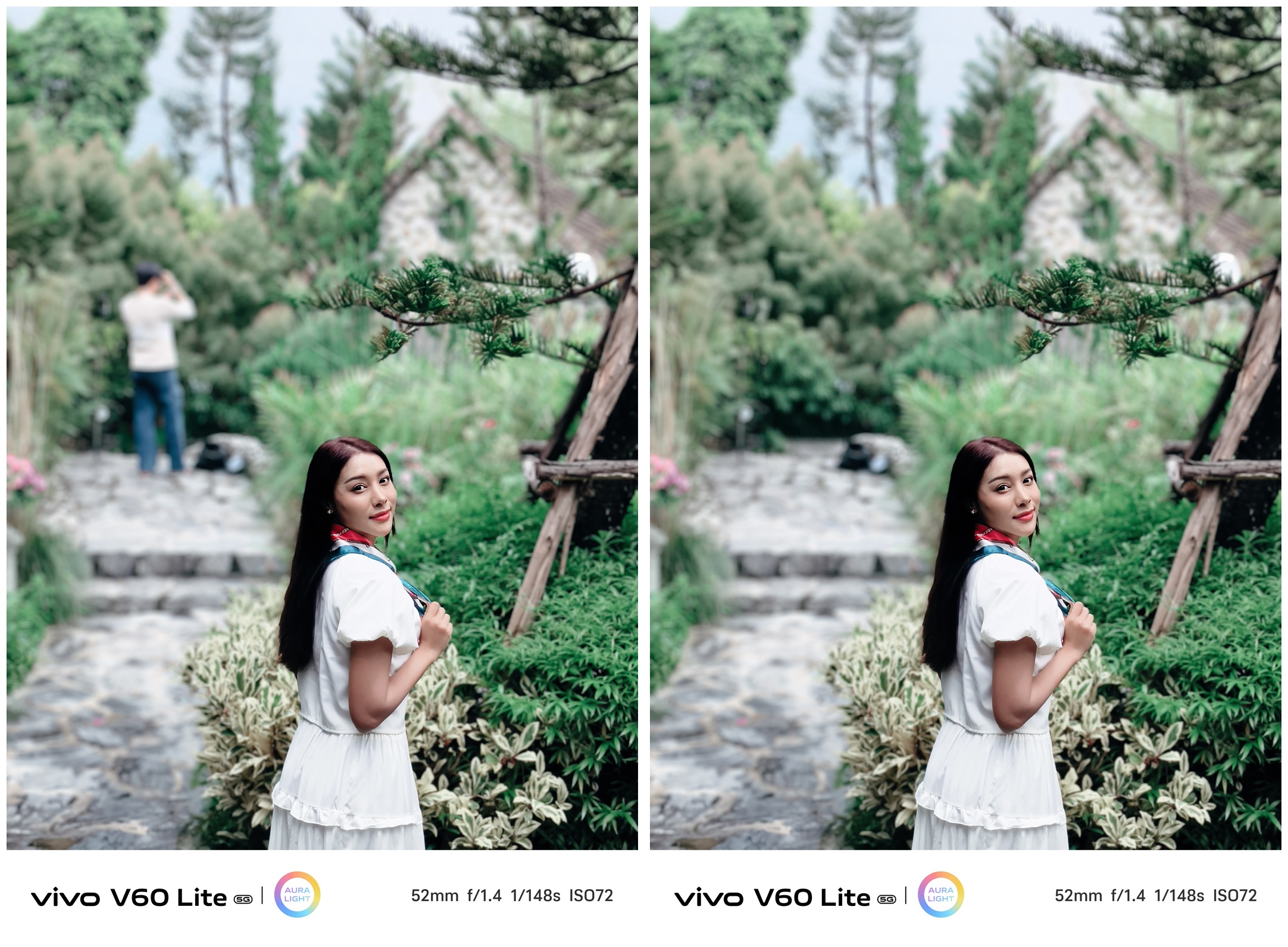 ถัดมาคือเรื่องของกล้องนั่นเอง แม้ว่า vivo V60 Lite จะไม่ได้ติดเลนส์ ZEISS ที่เป็นเอกลักษณ์ของ vivo มาให้ แต่ก็ยังคงใส่ฟีเจอร์และลูกเล่นต่างๆ มาให้ไม่ต่างกับรุ่นใหญ่เลย โดยเฉพาะการถ่ายภาพที่มีฟีเจอร์ AI Four Season Portrait สามารถตั้งค่าให้ได้ภาพถ่ายที่มีบรรยากาศเป็นฤดูต่างๆ ตั้งแต่ฤดูใบไม้ผลิ ฤดูร้อน ฤดูใบไม้ร่วง หรือฤดูหนาว โดย AI ใน vivo V60 Lite สามารถสร้างบรรยากาศได้อย่างสมจริงมากๆ